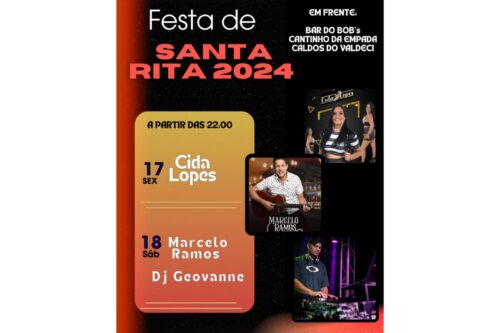 Shows da última semana da festa de Santa Rita, em frente ao Bobs Lanche, começam nesta quinta, 23 Shows da última semana da festa de Santa Rita, em frente ao Bobs Lanche, começam nesta quinta, 23 22 de maio de 2024
