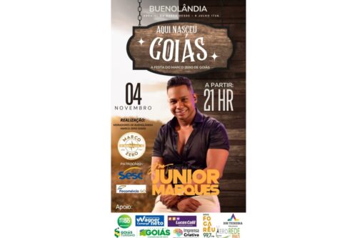Junior Marques é a grande atração musical da Festa do Marco Zero do Estado de Goiás, no Distrito de Buenolândia, no dia 04/11. Junior Marques é a grande atração musical da Festa do Marco Zero do Estado de Goiás, no Distrito de Buenolândia, no dia 04/11. 23 de outubro de 2023