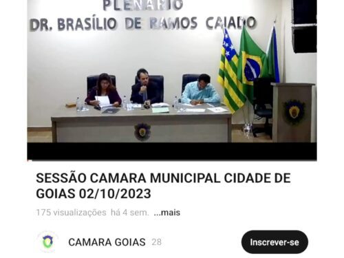 Novidade: Câmara Municipal de Goiás transmite as sessões ao vivo pelo Youtube Novidade: Câmara Municipal de Goiás transmite as sessões ao vivo pelo Youtube 1 de novembro de 2023