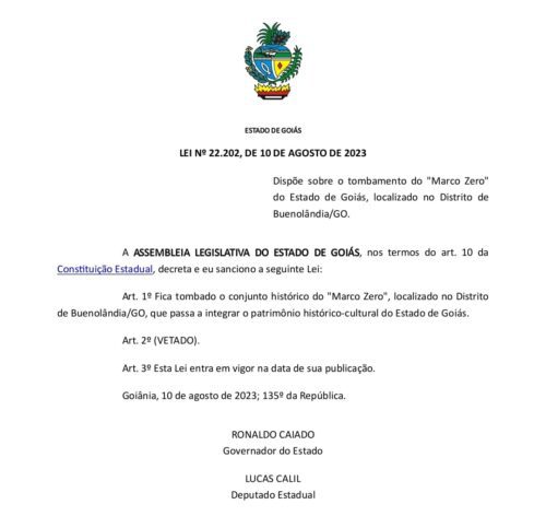 Marco zero do Estado de Goiás, que fica no Distrito de Buenolândia, agora é tombado por lei Marco zero do Estado de Goiás, que fica no Distrito de Buenolândia, agora é tombado por lei 12 de agosto de 2023