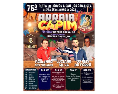 Começou a 76ª edição da Festa em homenagem à São João Batista da Rua do Capim- cidade de Goiás Começou a 76ª edição da Festa em homenagem à São João Batista da Rua do Capim- cidade de Goiás 24 de junho de 2022