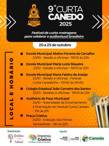 Programação do primeiro dia da 9ª do Curta Canedo Programação do primeiro dia da 9ª do Curta Canedo 20 de outubro de 2025