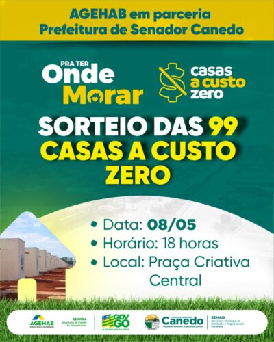Sorteio para casas a custo zero acontece nesta quarta em Senador Canedo Sorteio para casas a custo zero acontece nesta quarta em Senador Canedo 8 de maio de 2024