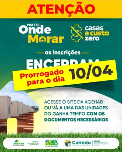 Prazo para se inscrever no programa “Pra Ter Onde Morar” foi prorrogado Prazo para se inscrever no programa “Pra Ter Onde Morar” foi prorrogado 10 de abril de 2024