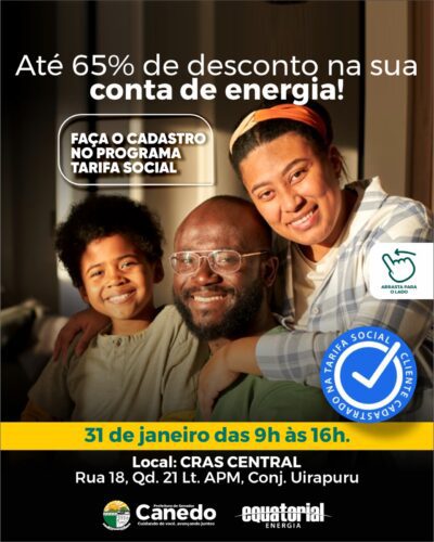 Prefeitura e Equatorial promovem cadastro no Programa Tarifa Social Prefeitura e Equatorial promovem cadastro no Programa Tarifa Social 19 de janeiro de 2024