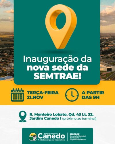 Prefeitura de Senador Canedo inaugura nova sede da SEMTRAE Prefeitura de Senador Canedo inaugura nova sede da SEMTRAE 20 de novembro de 2023