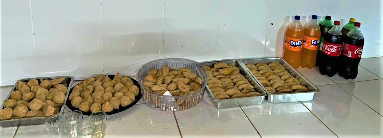 Na sequência, foi servido um lanche da noite, com refrigerantes, coxinhas e pastelão, proporcionando um momento de confraternização.