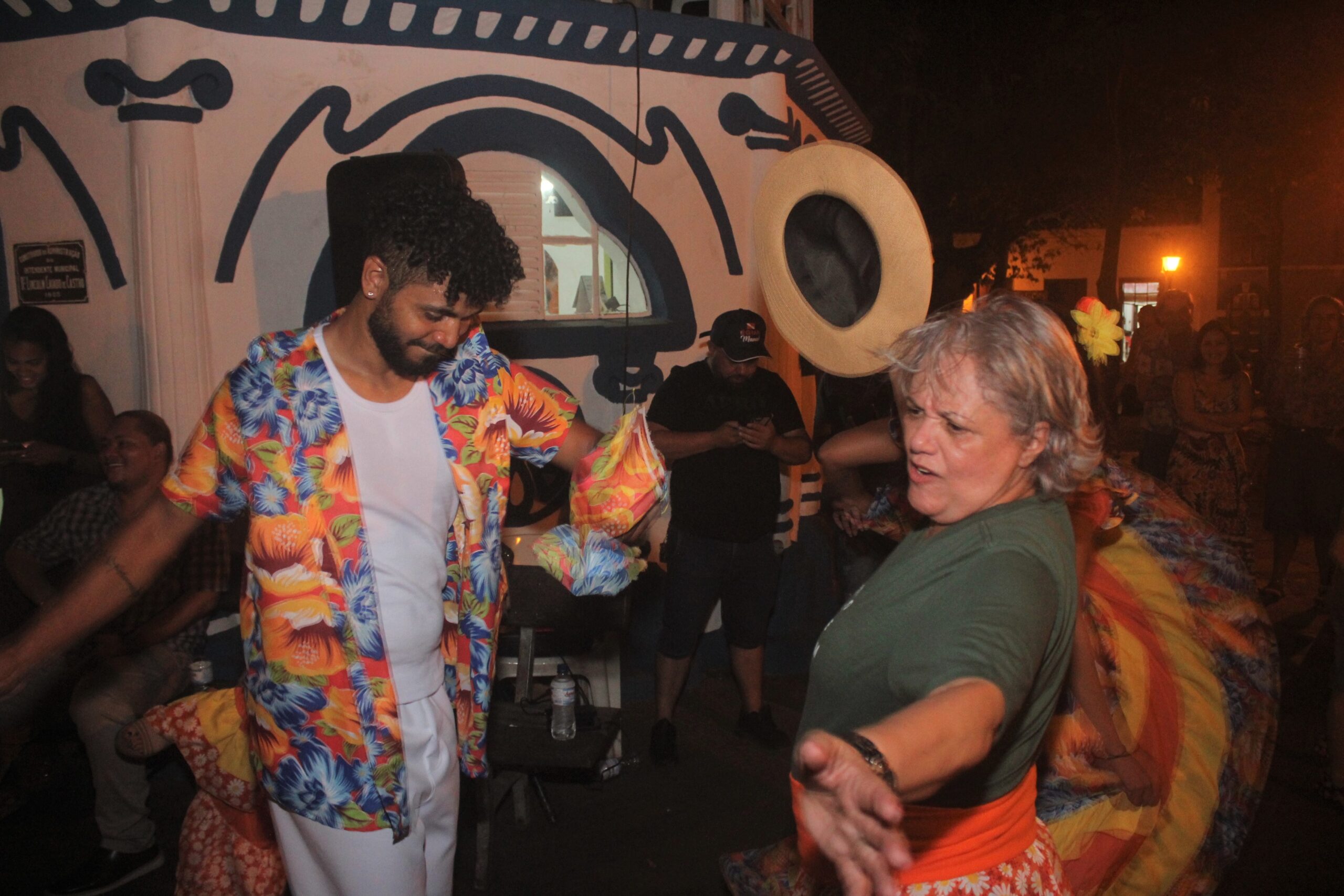 No começo da noite de sexta-feira(15/08) a Praça do Coreto, na cidade de Goiás, foi cenário de um encontro cultural emocionante. O tradicional carimbó, dança típica do Pará, ganhou espaço em meio às ruas históricas da antiga capital, em uma apresentação conduzida pela primeira-dama de Xinguara, Fátima Coutinho Assunção, que trouxe o casal de dançarinos Israel Morais e Luciene Santos.
