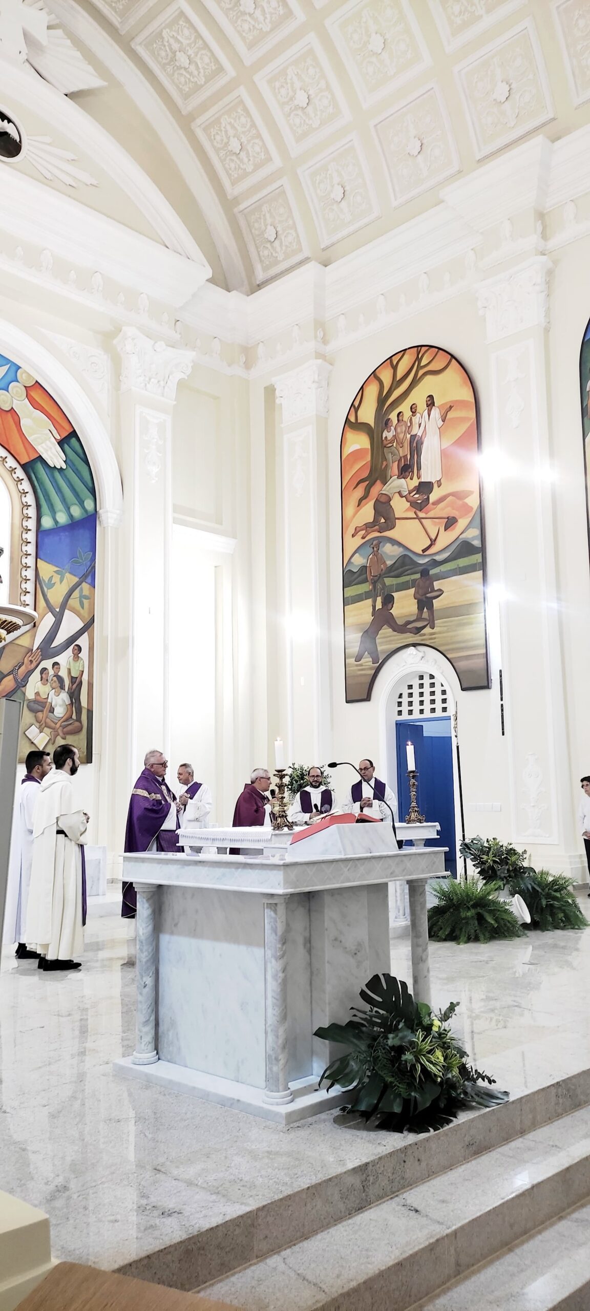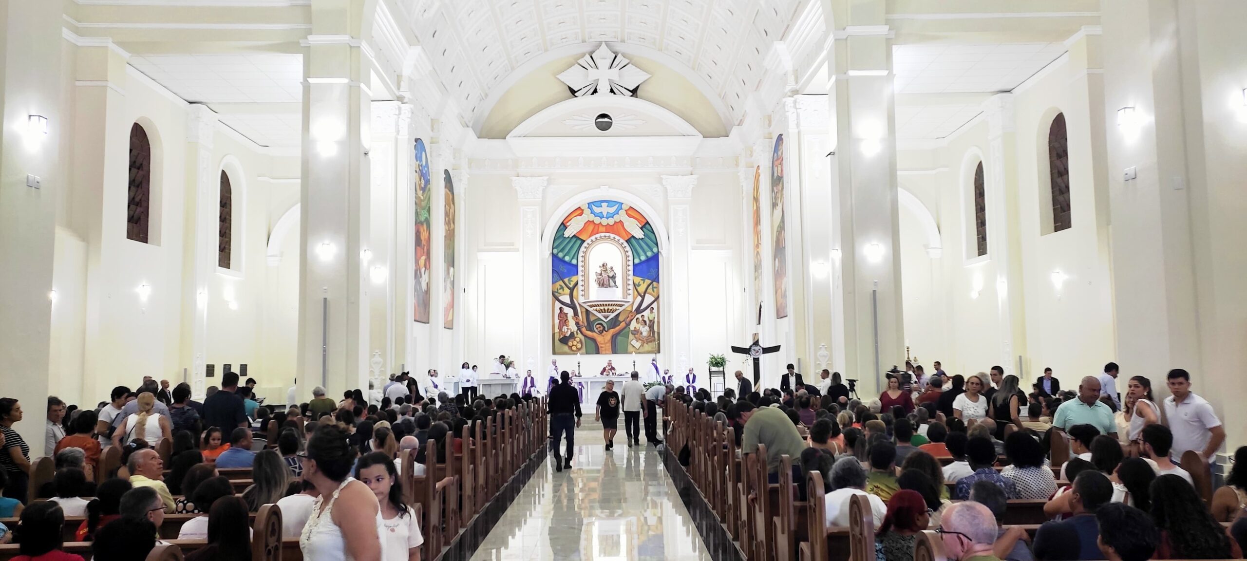 Os bancos foram trocados para dar mais conforto aos fieis, o som também é de ultima geração, com mais tecnologia e com qualidade e o presbitério da igreja foi feito todo de mármore.