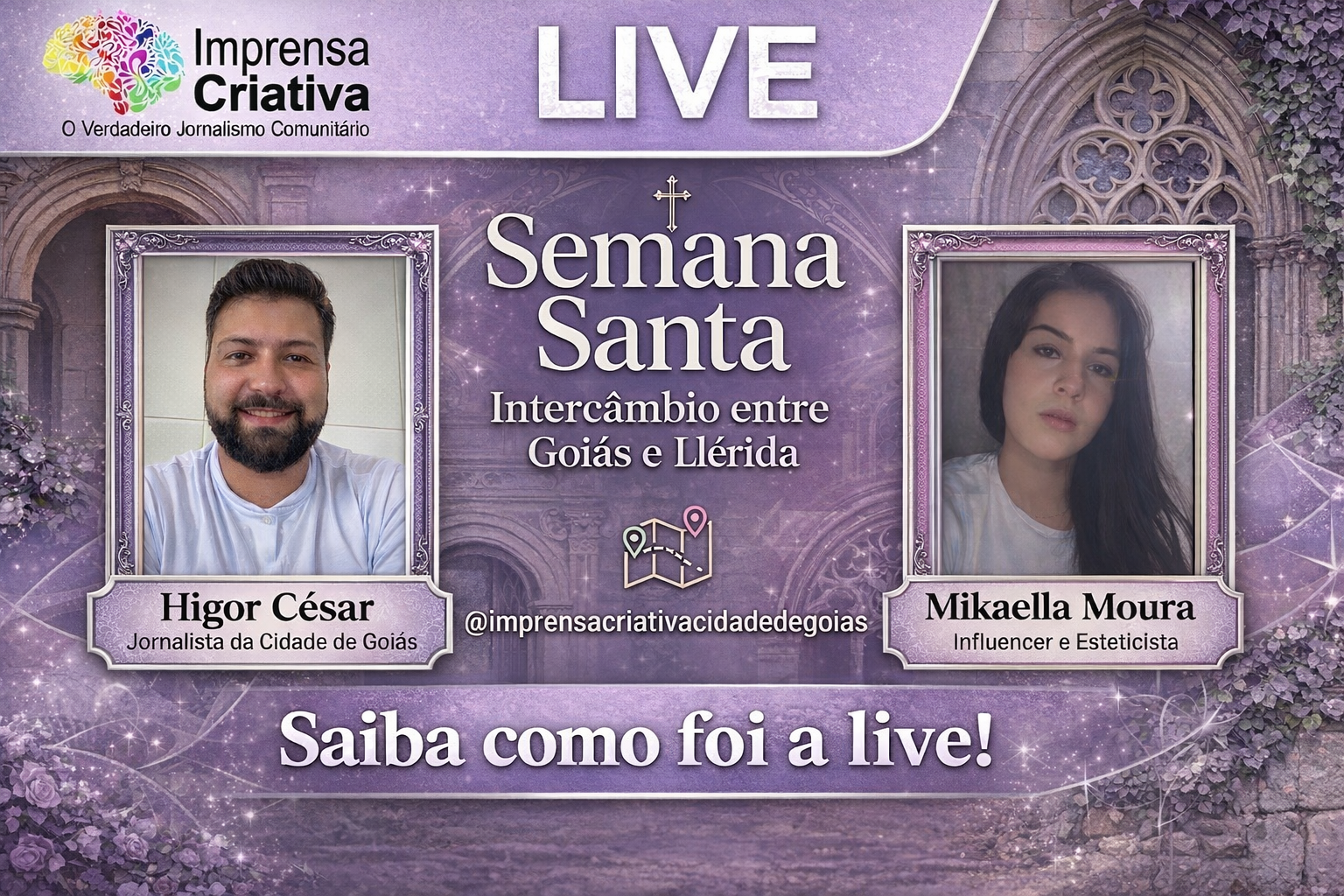 No último dia 01 de abril de 2026, o jornalismo comunitário rompeu fronteiras geográficas para unir duas cidades historicamente ricas em suas tradições religiosas. Através de uma transmissão ao vivo pelo Instagram @imprensacriativacidadedegoias, o projeto Imprensa Criativa promoveu um diálogo entre a Cidade de Goiás, antiga capital do estado, e Llérida (Lleida), na região da Catalunha, Espanha.