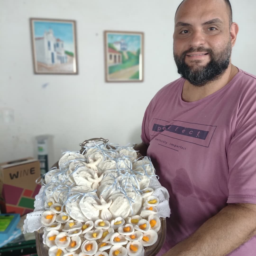 Depois de seco, o alfenim aceita pintura, feita com anilina comestível. Aqui em casa, uma vez que fiz a experiência, ele durou mais de cinco meses na cristaleira. Porém, com o tempo, vai ficando murcho ou meio amarelado. Na época da seca, ele fica duro como um pirulito; já na época da chuva, fica mais macio, como se fosse uma balinha de coco.