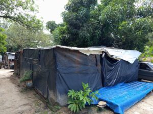 A precariedade das condições de moradia também faz parte da rotina. Maria das Graças Alves Ferreira e o esposo, Antônio Manoel dos Santos, estão há dois anos no acampamento e vivem em um barraco de lona simples, dividido em apenas um quarto, cozinha, banheiro e uma pequena área na frente.