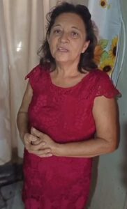 Maria Aparecida do Nascimento de Castro mora no acampamento há cinco anos e reforça o desejo de produzir para o próprio sustento. Ela faz um apelo por ajuda e diz que quer viver da terra, plantando para consumo próprio.