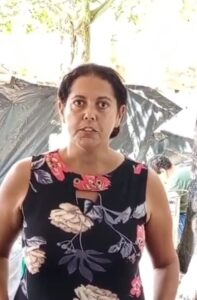 Maria Aparecida do Nascimento de Castro mora no acampamento há cinco anos e reforça o desejo de produzir para o próprio sustento. Ela faz um apelo por ajuda e diz que quer viver da terra, plantando para consumo próprio.
