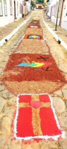 Todo ano como de costume, fiéis confeccionam tapetes coloridos, em uma noite antes da quinta-feira de Corpus Christi, para amanhecerem prontos, a procissão passa em volta dos tapetes