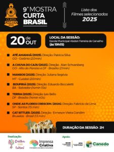 Além deste workshop, também outro, homenagens e encerramento do 9° do Curta Canedo, lembrando que as atividades acontecem no Auditório do Paço Municipal de Senador Canedo, veja abaixo a programação completa desta sexta-feira(24/10):