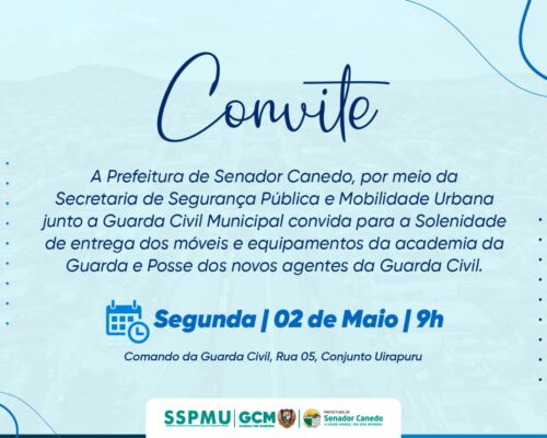 Evento de Posse de novos agentes da Guarda Civil de Senador Canedo acontecerá na manhã desta segunda (02) Evento de Posse de novos agentes da Guarda Civil de Senador Canedo acontecerá na manhã desta segunda (02) 1 de maio de 2022