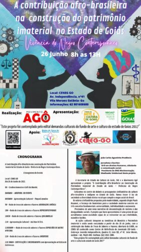 A Secretaria de Estado da Cultura de Goiás, FAC e o Movimento Agô apresentam o projeto “A Contribuição Afro-brasileira na Construção do Patrimônio Imaterial do Estado de Goiás – Vivências do Negro Contemporâneo”. A Secretaria de Estado da Cultura de Goiás, FAC e o Movimento Agô apresentam o projeto “A Contribuição Afro-brasileira na Construção do Patrimônio Imaterial do Estado de Goiás – Vivências do Negro Contemporâneo”. 21 de junho de 2022