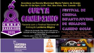 Com produção de Talita Atahalpa (Festival Curta Canedinho) e Camila Nunes (Festival Lanterna Mágica), e sob a coordenação de Carmelita Gomes (Curta Canedo 2025) e Gyannini Jácomo (Escola Maria Faleiro de Araújo), o evento reafirma a potência do audiovisual como ferramenta pedagógica e de transformação social.