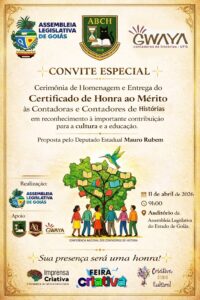No próximo dia 11 de abril de 2026, às 9h, o Plenário Iris Rezende Machado será palco de uma importante celebração: a Sessão Solene de Homenagem aos Contadores e Contadoras de histórias do Brasil, com a entrega da Comenda do Mérito Legislativo. A iniciativa reconhece profissionais que, por meio da oralidade, da arte e da sensibilidade, mantêm viva uma das mais antigas formas de transmissão de conhecimento da humanidade.