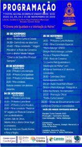 Dia 25 de Novembro 2023 – Programação da Mostra Curta Mulheres do Festival Curta Canedo -desde as 14 até as 22:00 horas. no Auditório do Novo Paço Municipal Prefeitura Municipal de Senador Canedo