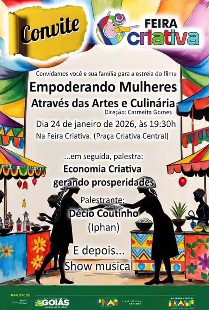 Convidamos toda a família para uma noite especial na Feira Criativa, em Senador Canedo. Vamos celebrar a força das mulheres e o potencial da nossa economia criativa com uma programação imperdível: