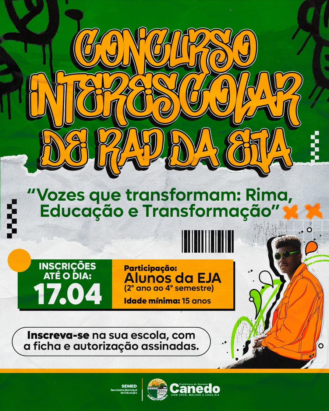 A Secretaria Municipal de Educação de Senador Canedo (SEMED) publicou o Edital nº 01/2026, que regulamenta o Concurso Interescolar de RAP da Educação de Jovens e Adultos (EJA). Com o tema “Vozes que transformam: Rima, Educação e Transformação”, a iniciativa busca incentivar a produção artística e fortalecer a identidade dos estudantes da rede municipal.