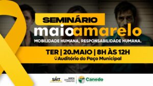 A ação faz parte das mobilizações da campanha Maio Amarelo, movimento internacional de conscientização para a redução de acidentes de trânsito. O objetivo do seminário é promover o debate sobre segurança viária e mobilidade urbana, reunindo especialistas, gestores públicos e representantes de instituições ligadas ao trânsito.