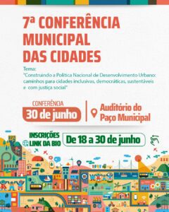 Com o tema “Construindo a Política Nacional de Desenvolvimento Urbano”, a conferência debate os desafios do crescimento urbano e elegerá os delegados que representarão o município na etapa estadual. A participação é gratuita e as inscrições podem ser feitas até o dia do evento pelo link: